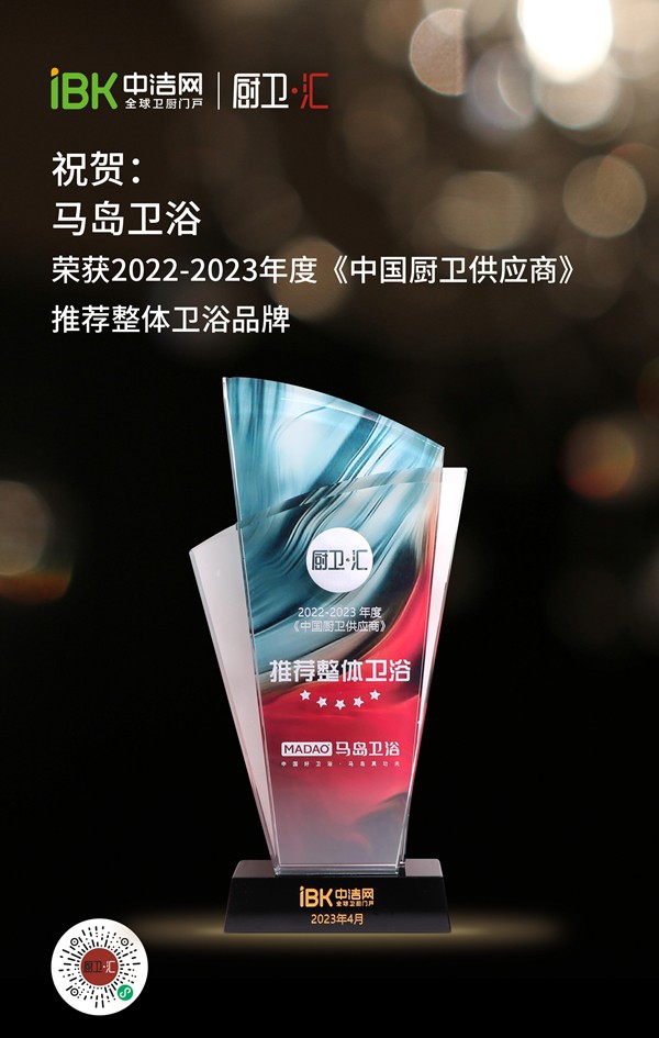马岛卫浴凭借优异的成长性和市场表现,荣获“2022-2023年度中国厨卫供应商推荐整体卫浴品牌”。