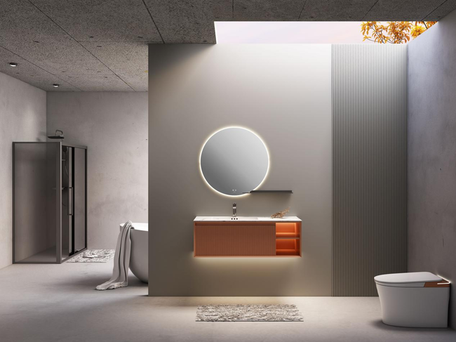 色彩是最直观的表达。最能体现年轻活力的色彩莫过于橙色。亚朵浴室柜将时下流行的琥珀橙大面积应用于柜体上,整个浴室空间因此而充满热情的生命力。镜子背面和主柜内部设有光源,灯光进一步强化了色彩,更显鲜活灵动。