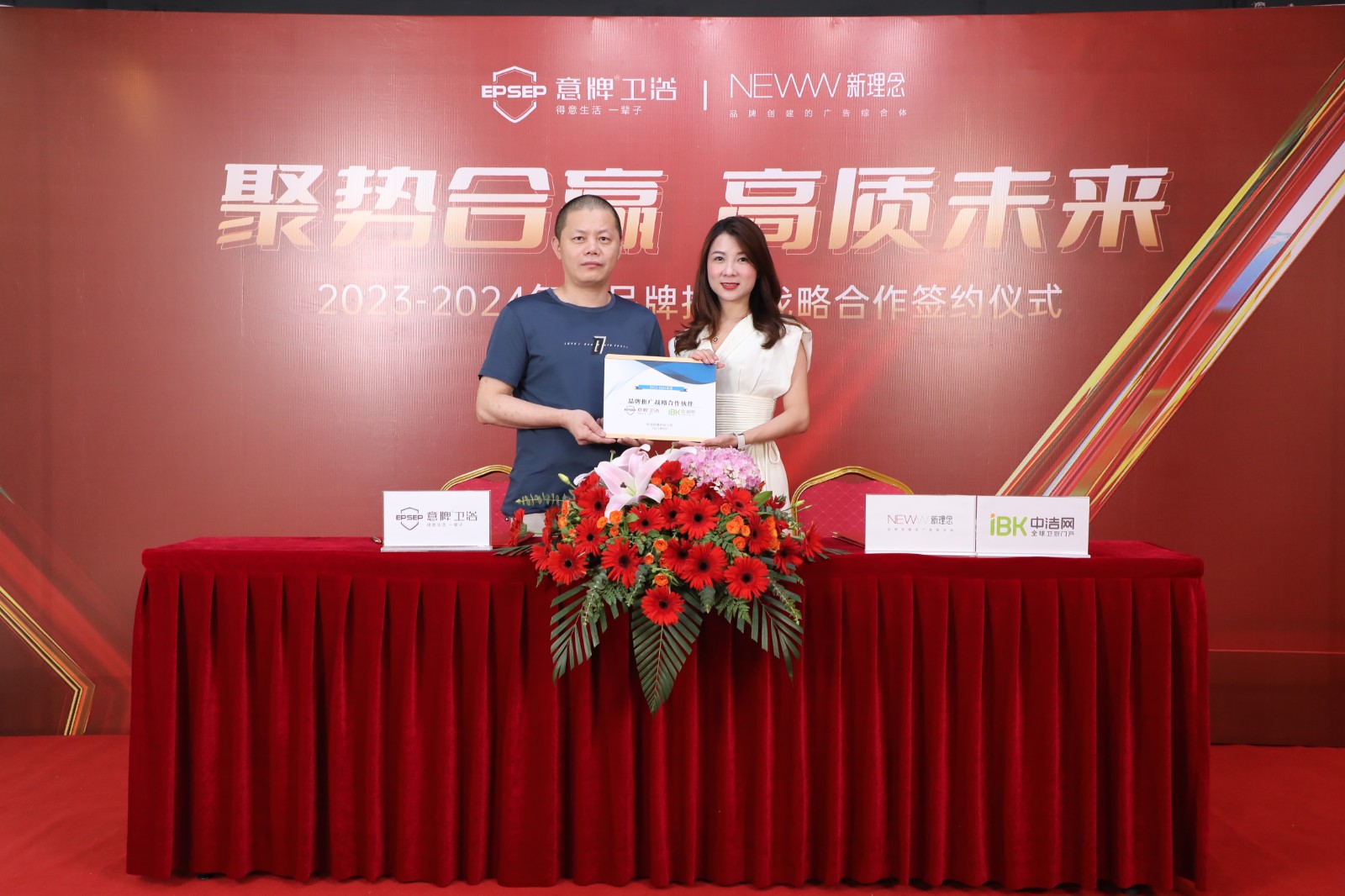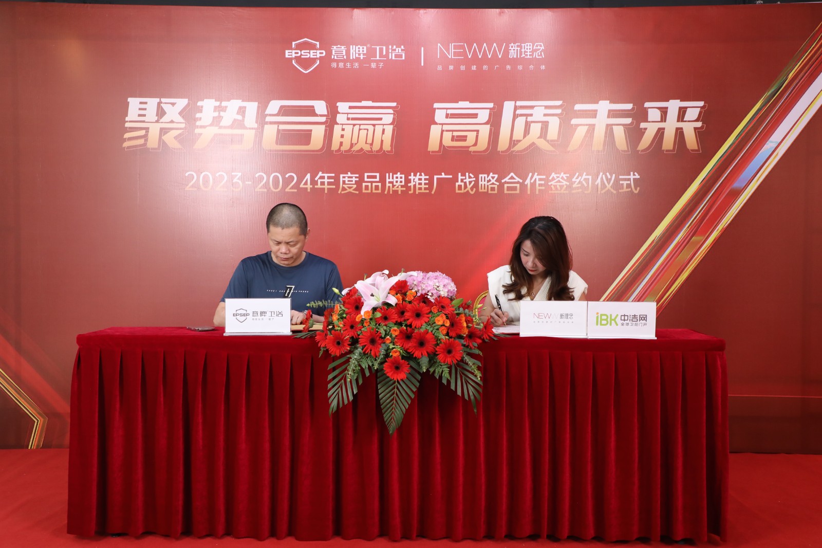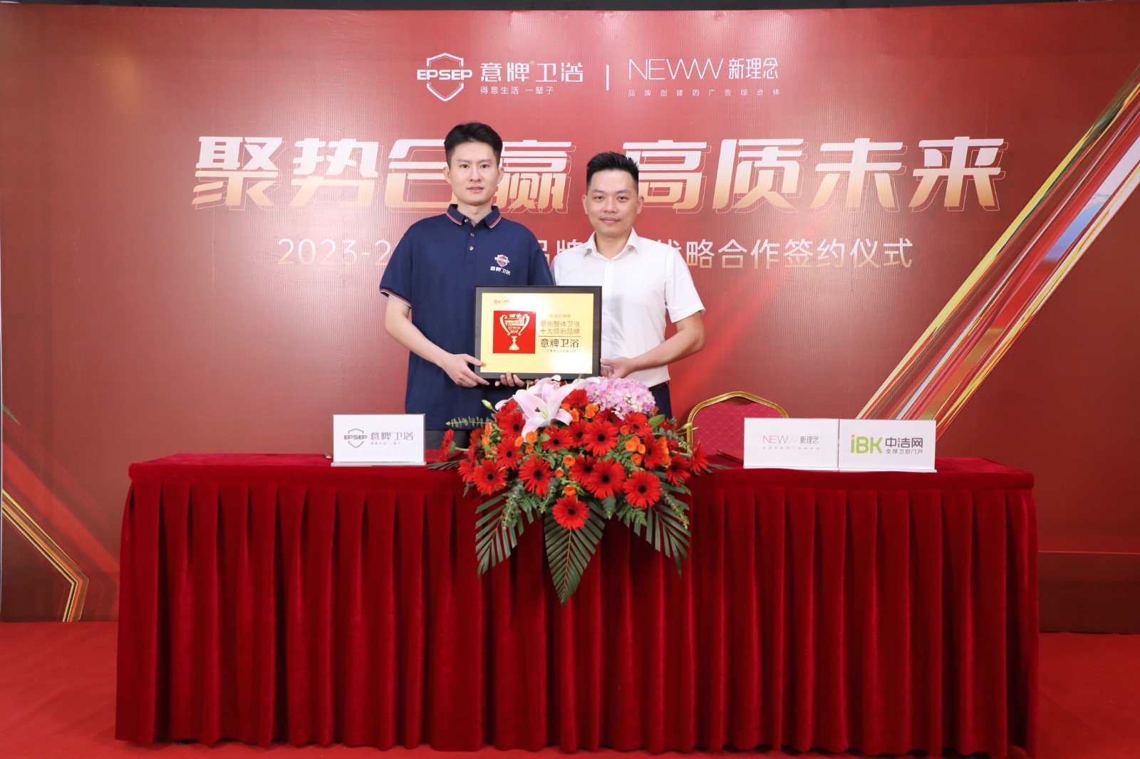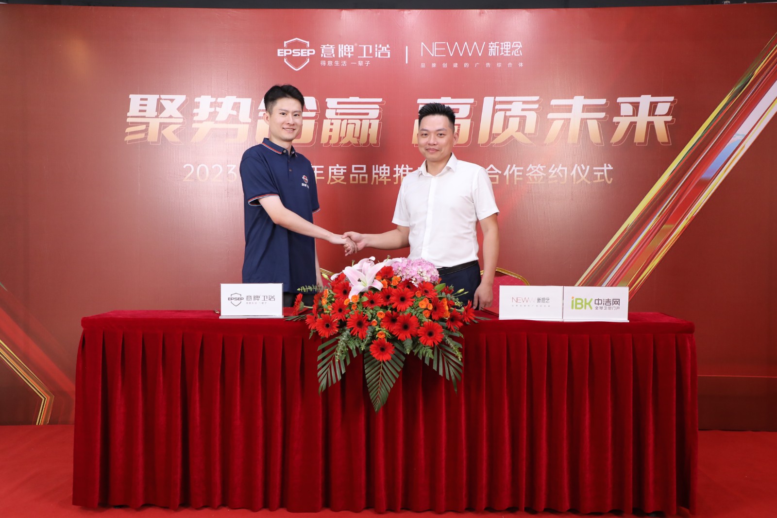 同期,意牌卫浴与新理念广告策划(中洁网潮州)再度携手,签约2023-2024年品牌推广战略合作,共同为推介优质卫浴产品,共同守护万千中国家庭的健康舒适生活。
