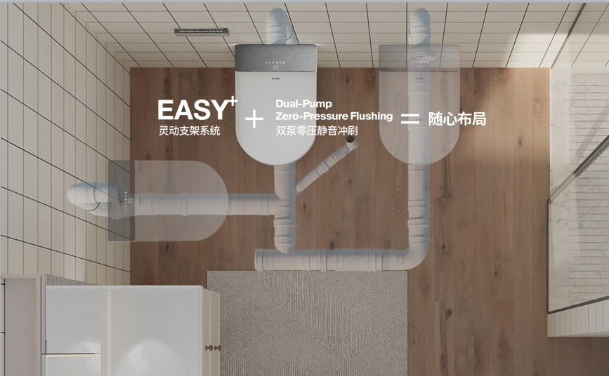 创新EASY+灵动支架系统安装便捷:与传统复杂的挂墙内置水箱相比,EASY+灵动支架系统高度和厚度大大降低,极大地降低安装难度,真正做到美观与性能兼得。