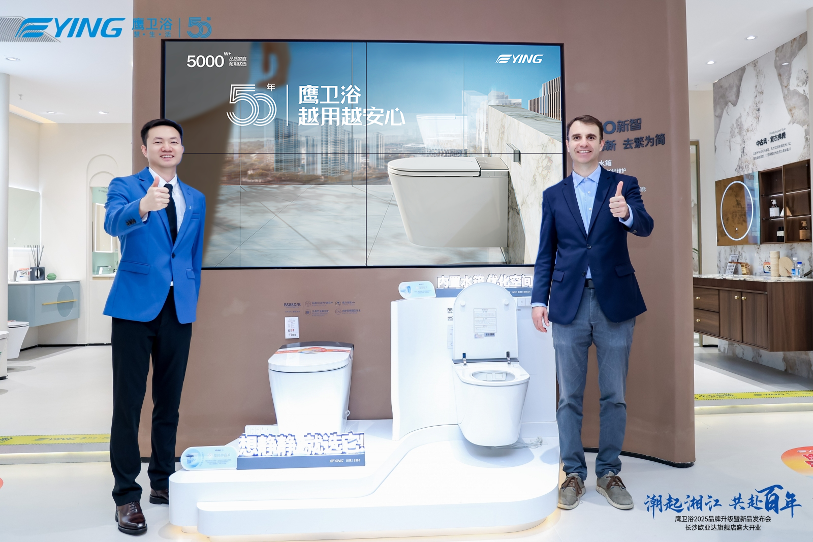 “鹰卫浴50年 越用越安心”不仅是品牌的自信宣言,更是三重承诺:为用户提供耐用产品与服务,与合作伙伴共创可持续未来,以技术创新增强竞争力、惠及全球用户。