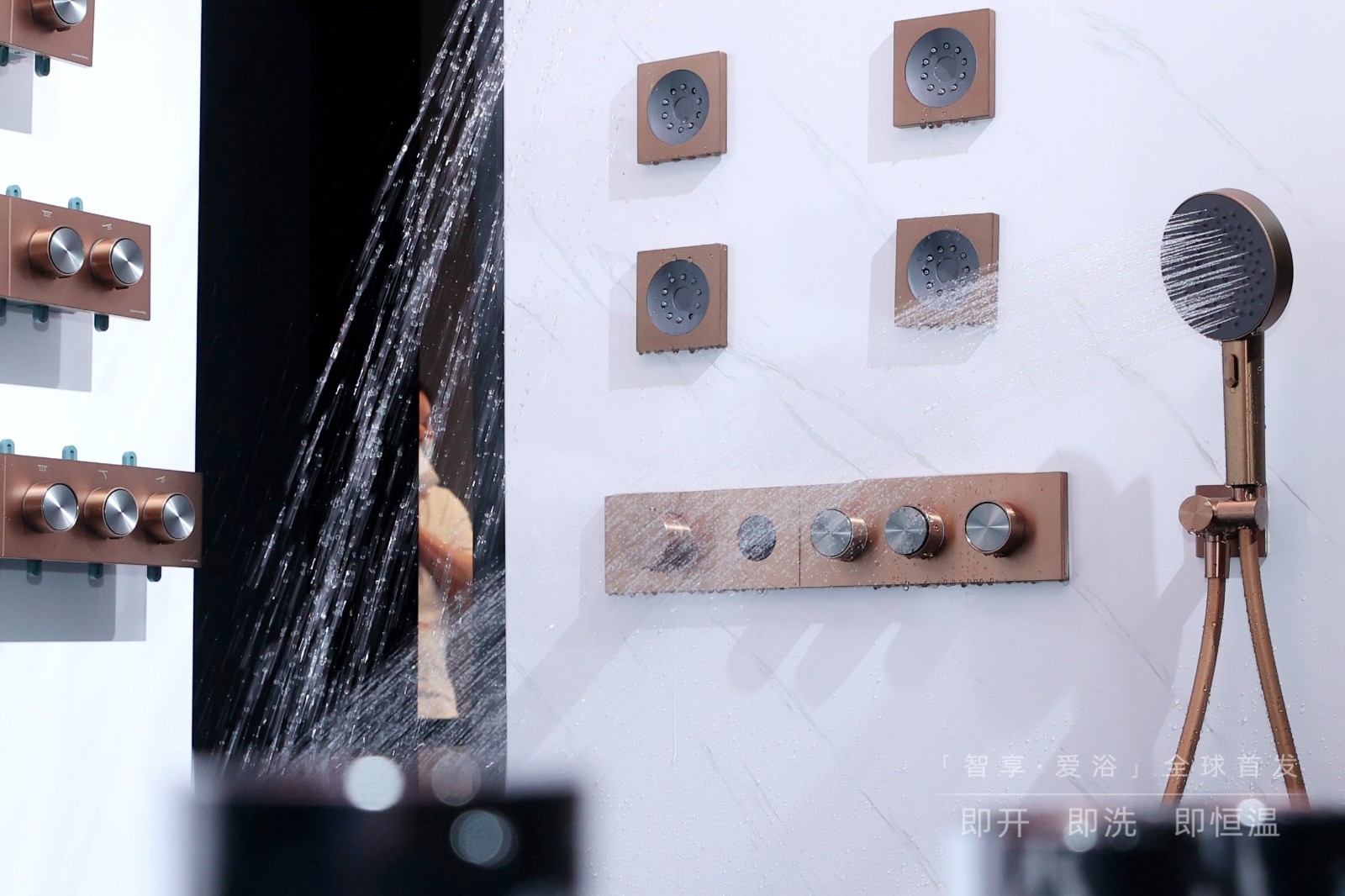开展首日,汉玛克重磅发布「智享爱浴」——即开、即洗、即恒温的高奢恒温智能花洒,成为全场技术创新的高光时刻。