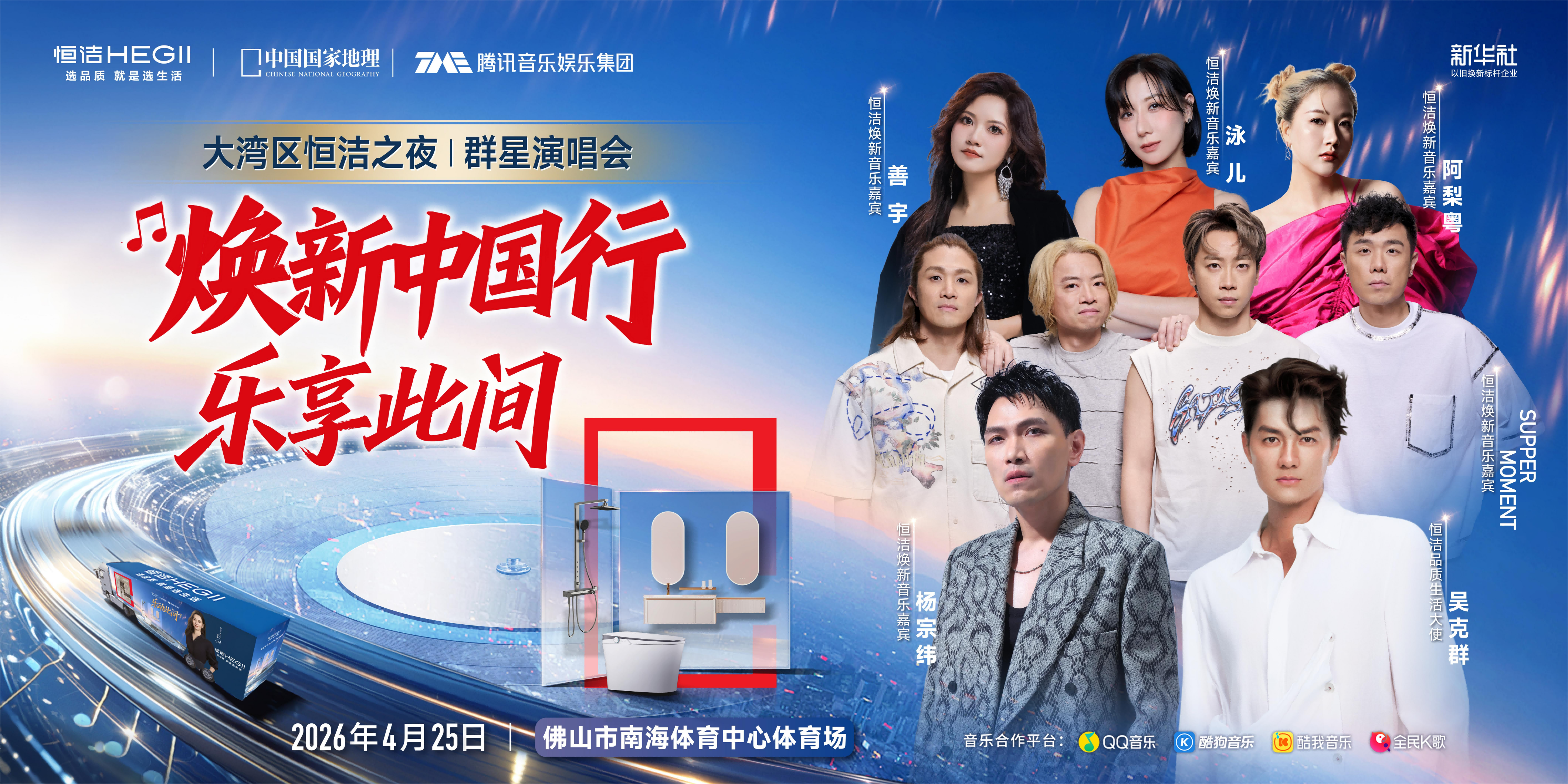 在《恒洁焕新·品质之旅》主题分享中,恒洁围绕“美好此间新启”,系统呈现了品牌在品质焕新赛道上的持续探索。以“乐动此间”为主线,恒洁携手《中国国家地理》与国民音乐门户腾讯音乐娱乐集团,开启全新的此间之旅,让品质生活走出空间,走进更广阔的城市与文化场景。并以大湾区音乐节热力开唱为起点,开启“乐动此间”音乐季,让“焕新”从产品体验延展为更具参与感与情绪价值的生活方式表达。