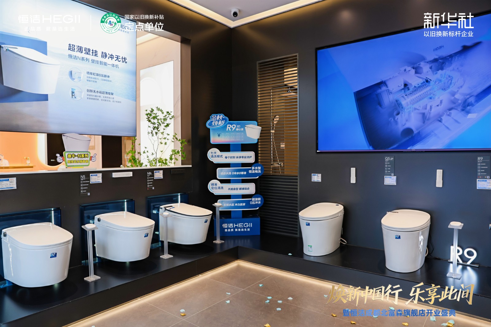 焕新开业的成都北富森旗舰店以场景化展示为核心,系统呈现恒洁“新智享、新悦己、新沐浴”卫浴等多场景解决方案,并推出多重焕新礼遇,为消费者带来更具诚意的品质焕新体验。